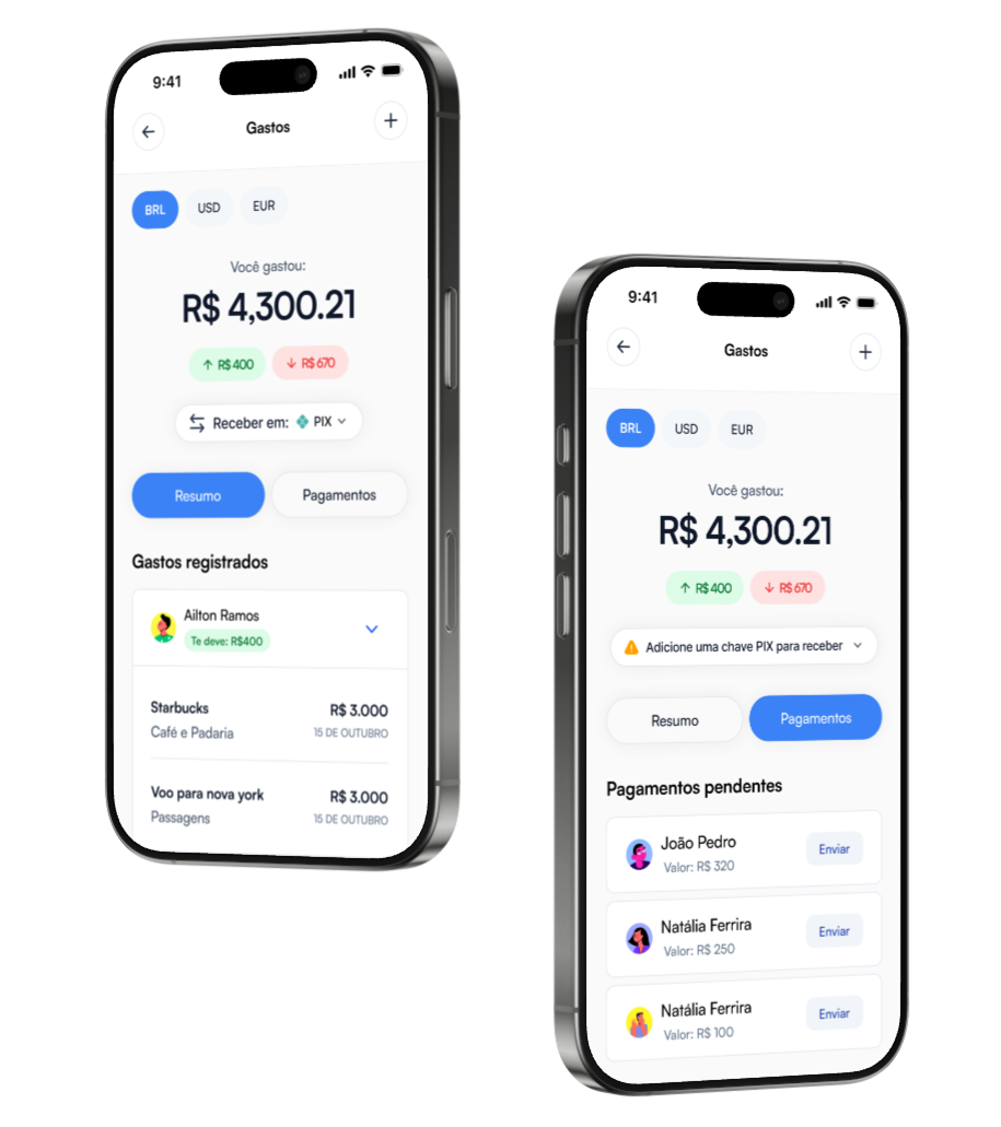 Você pode registrar quem pagou o quê e dividir os custos entre os participantes da viagem de forma simples e transparente — tudo dentro do app.